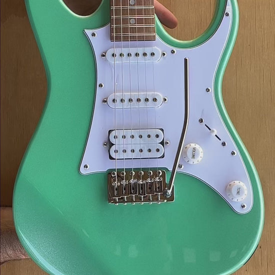 La Ibanez GRX40 es una maravilla de costo-calidad, especial para instrumentistas principiantes a intermedios, con colores preciosos inspiradas en los autos americanos de los 60. La combinación de cápsulas SSH le dan gran versatilidad para cubrir un rango ampliado de estilos y sonidos. Cómo te vas a lucir con esta joyita...